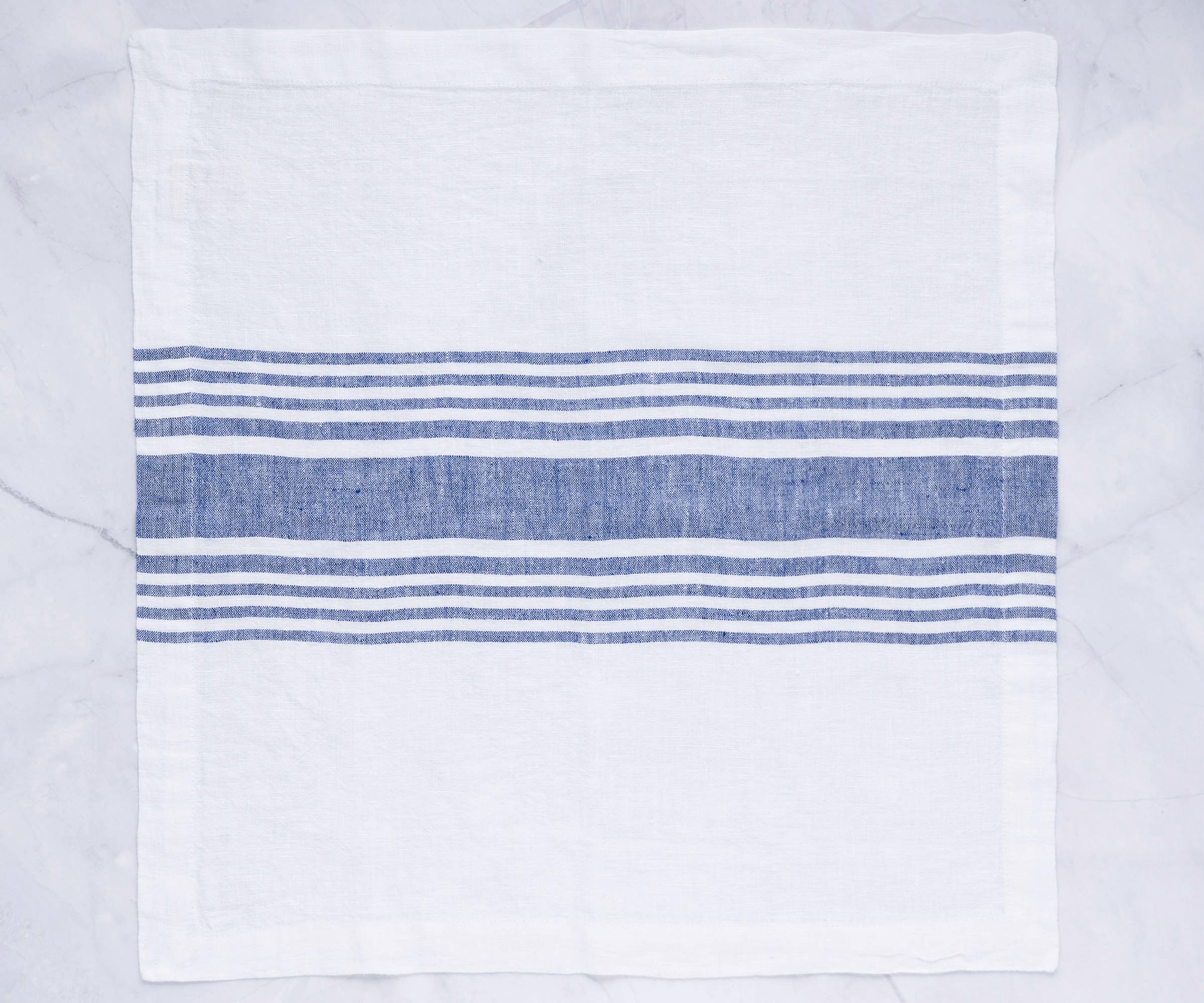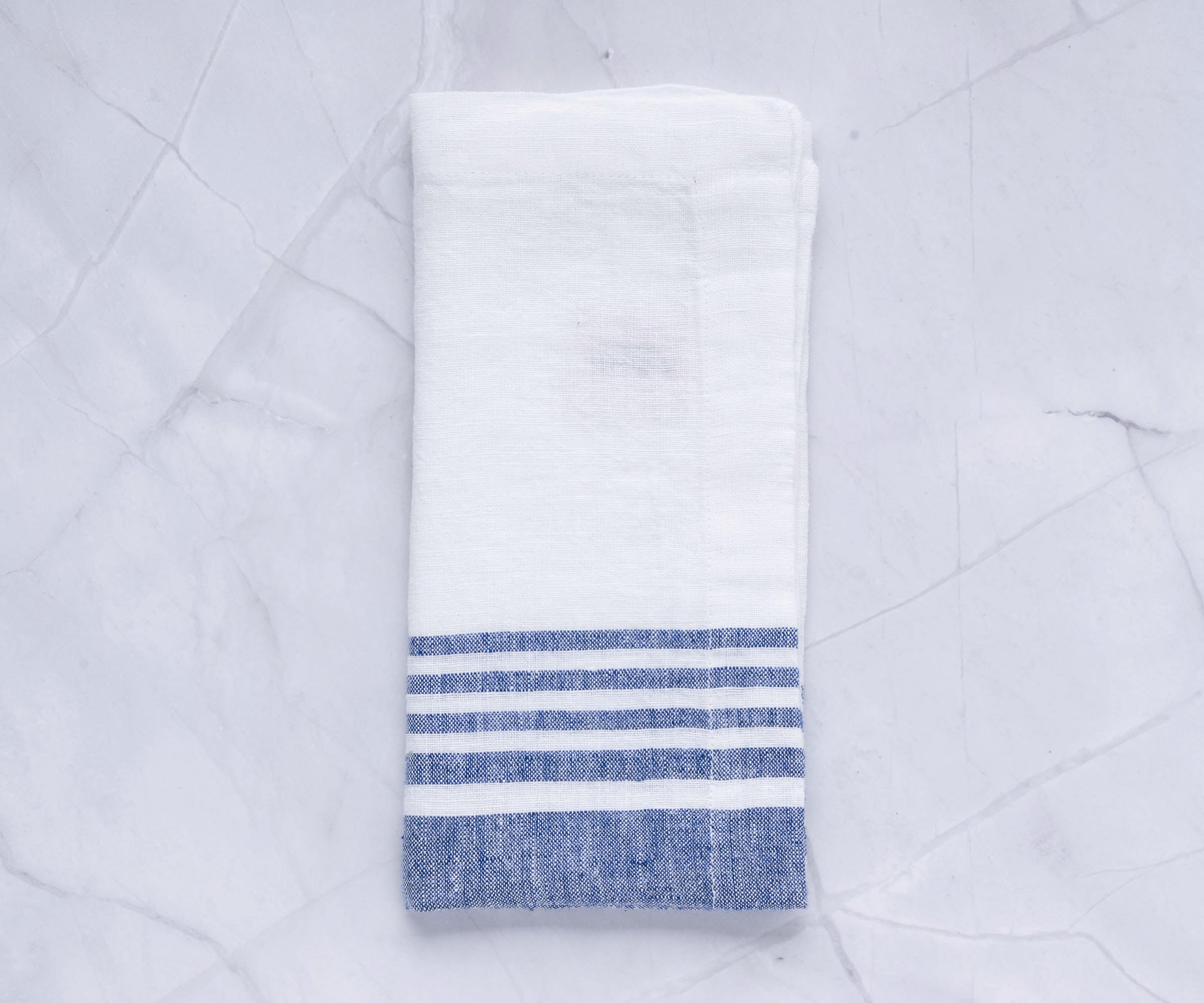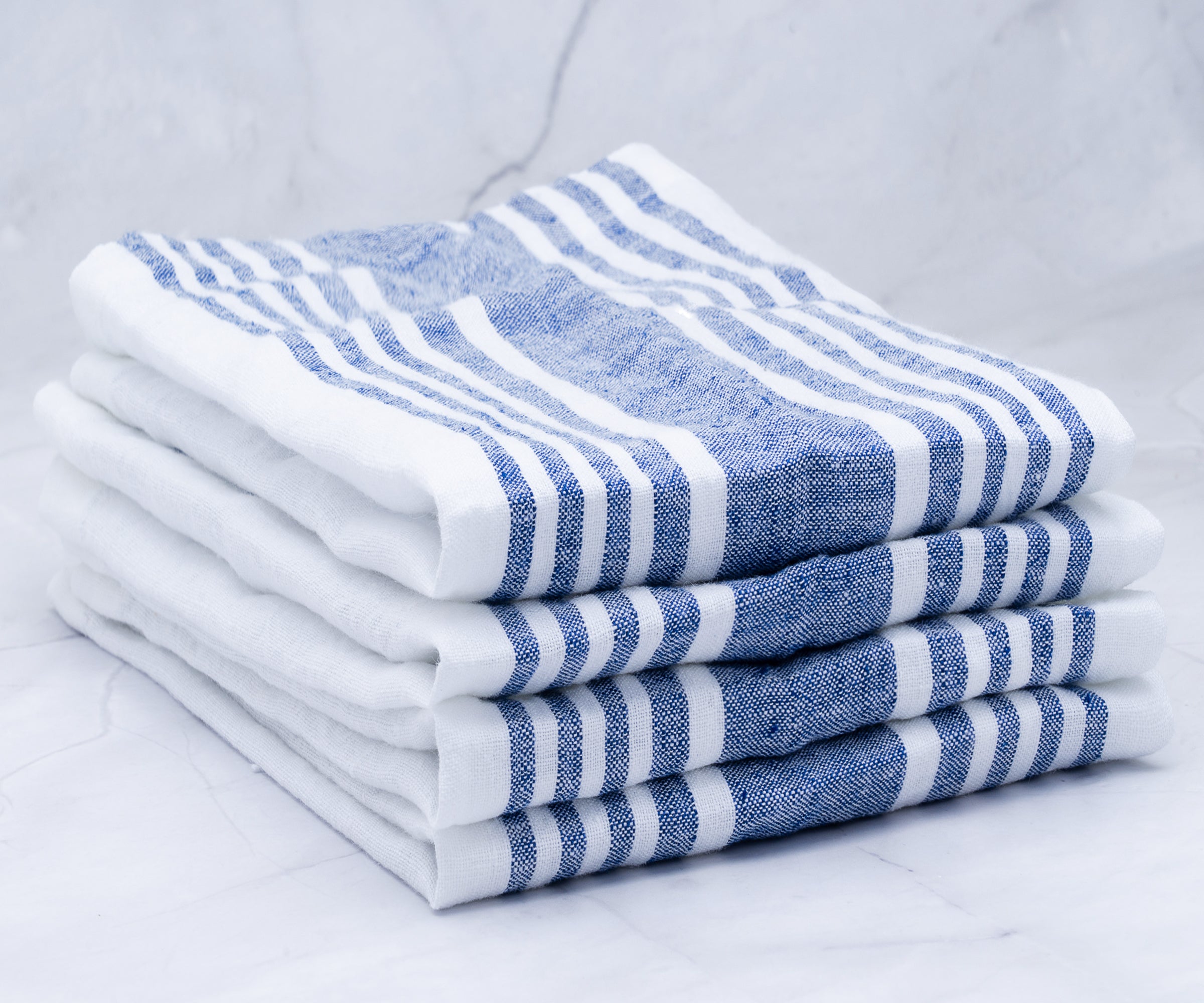 Stripes add a casual yet elegant touch to any table, blending seamlessly with various dinnerware patterns. Our Blue Striped Napkins, inspired by coastal designs, feature soft blue and white tones for a fresh, sophisticated vibe. Crafted from 100% linen, they offer luxury, durability, and European-inspired charm, perfect for everyday use or special occasions.