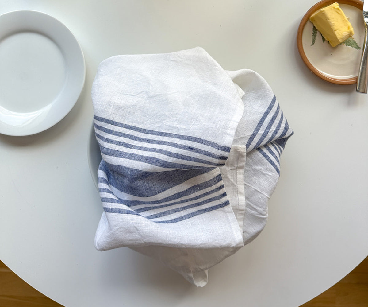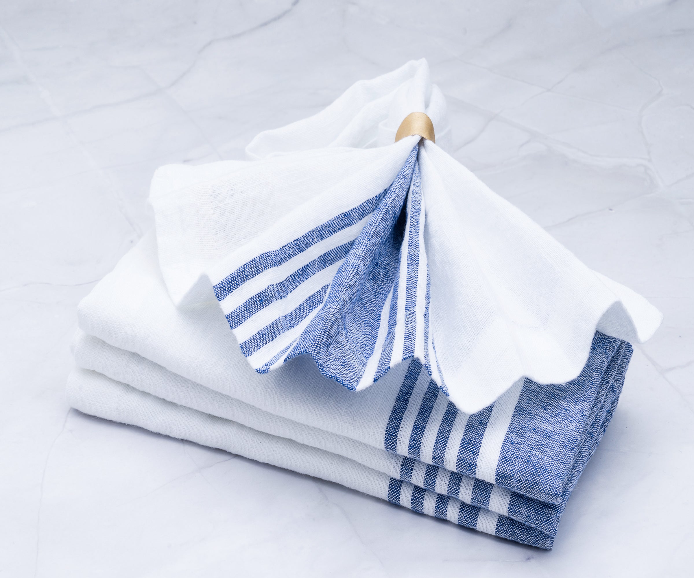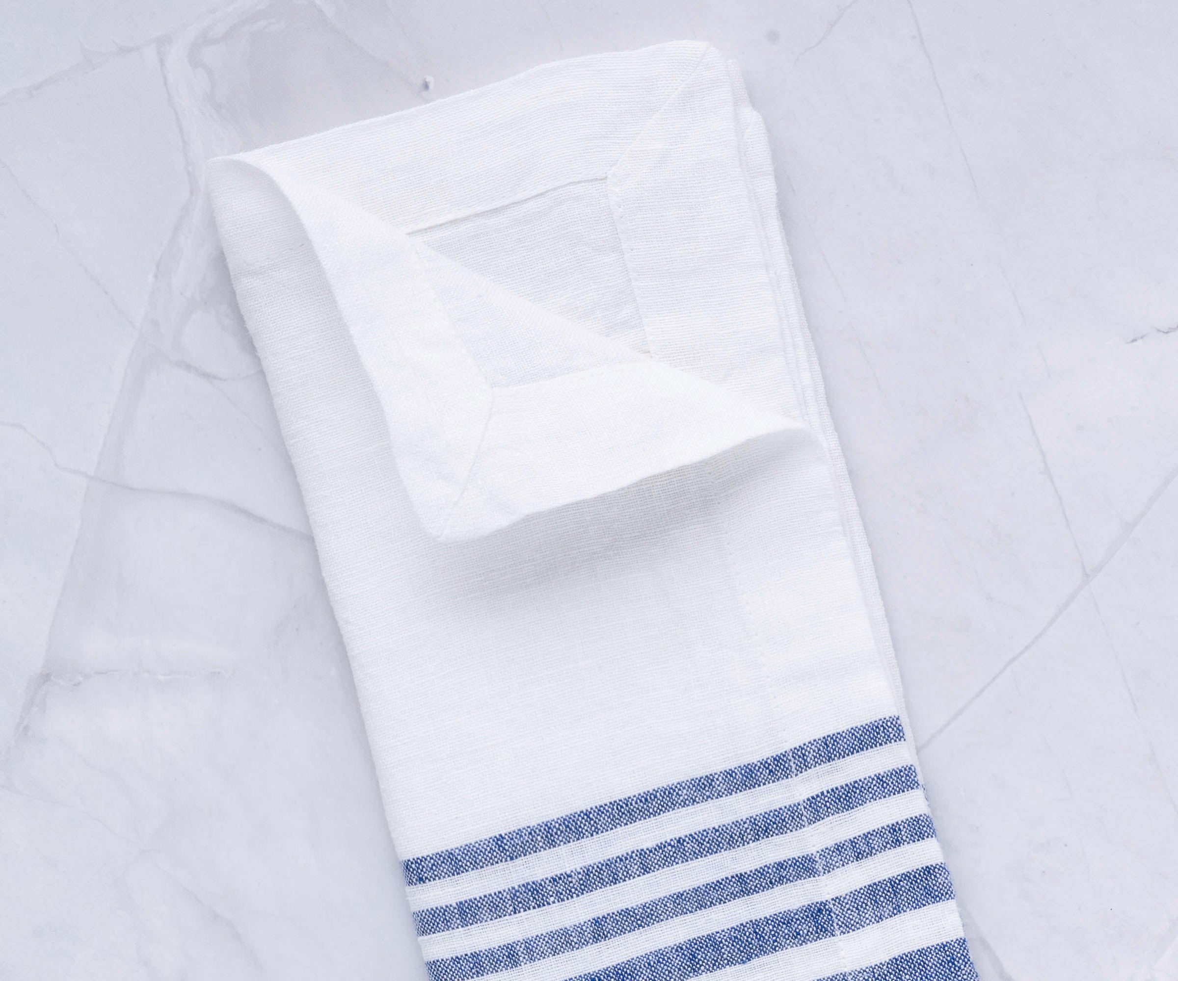 Stripes add a casual yet elegant touch to any table, blending seamlessly with various dinnerware patterns. Our Blue Striped Napkins, inspired by coastal designs, feature soft blue and white tones for a fresh, sophisticated vibe. Crafted from 100% linen, they offer luxury, durability, and European-inspired charm, perfect for everyday use or special occasions.