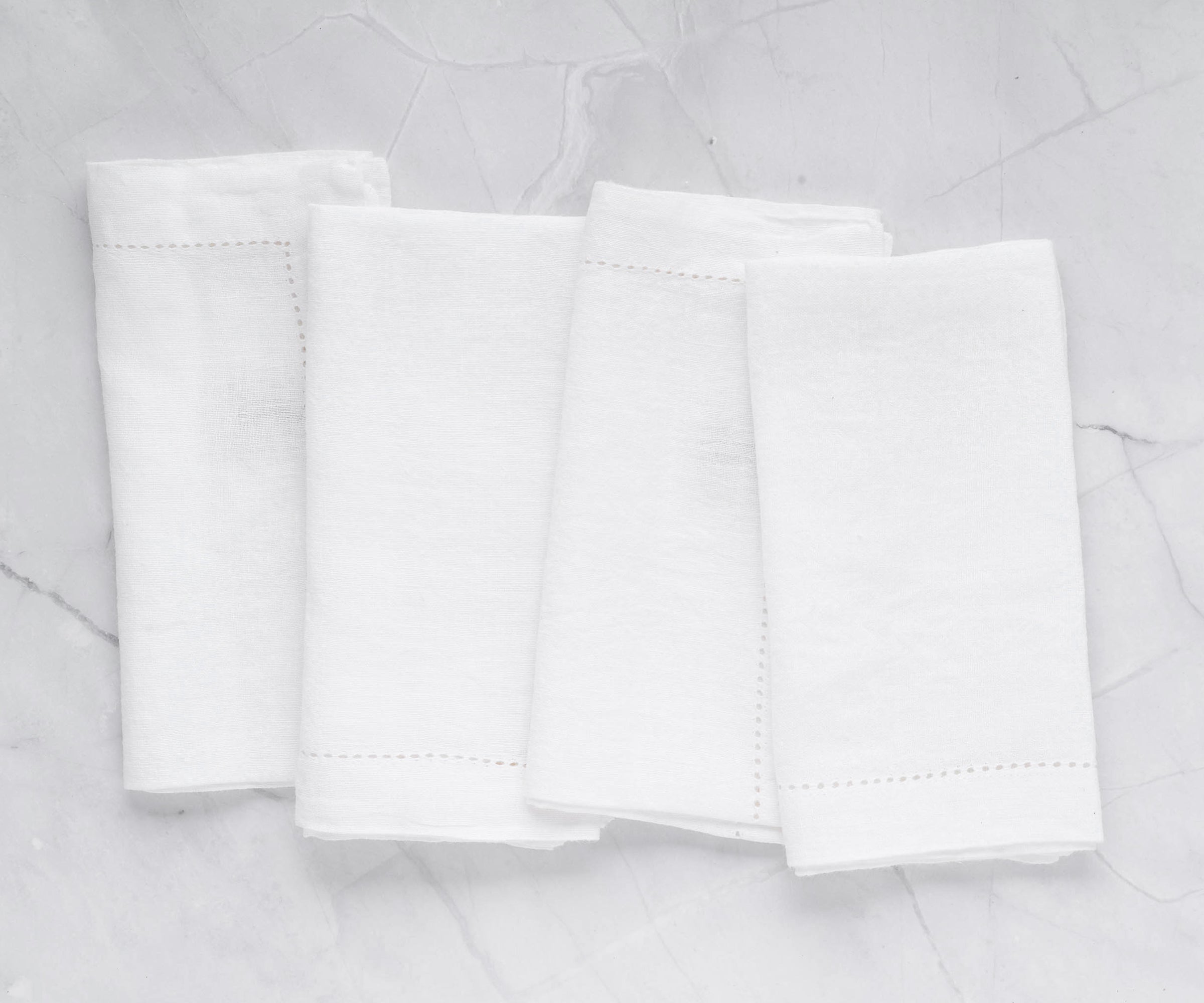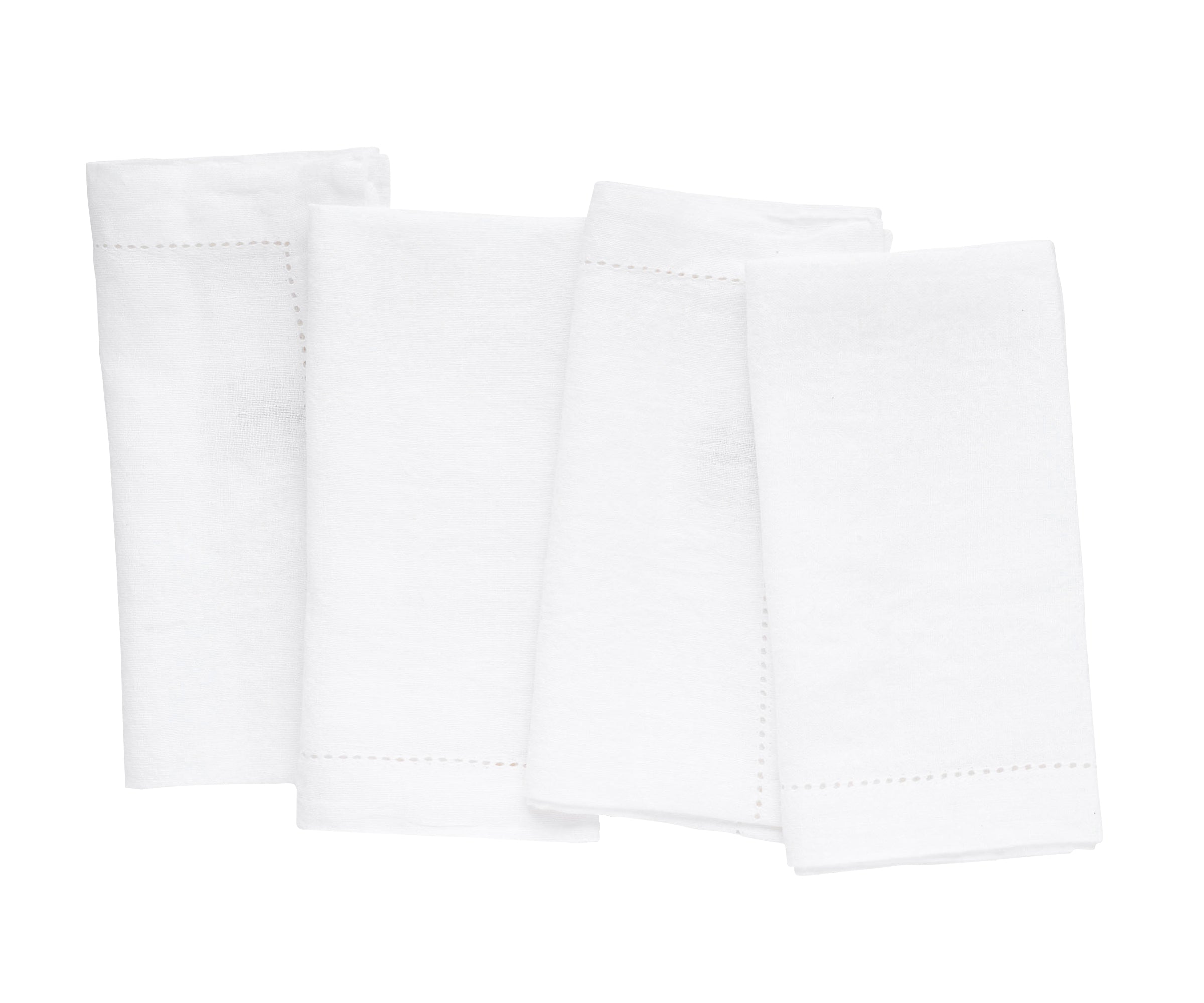 - Made from high-quality linen, these White napkins are durable, soft, absorbent, and easily machine-washable. They are available in a Set of 4 sizes: 18 x 18 inches.