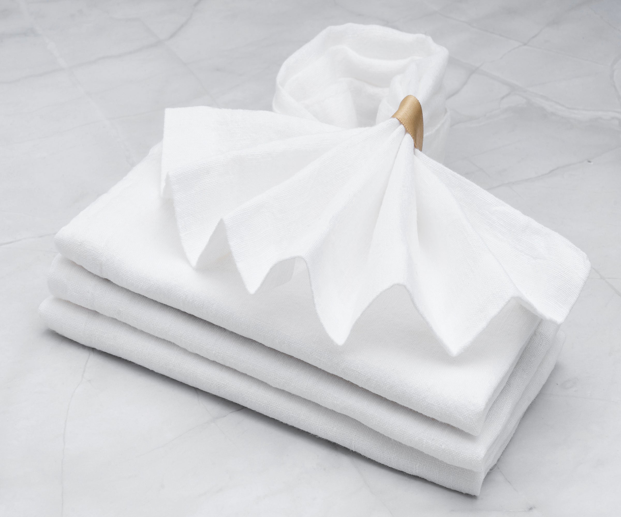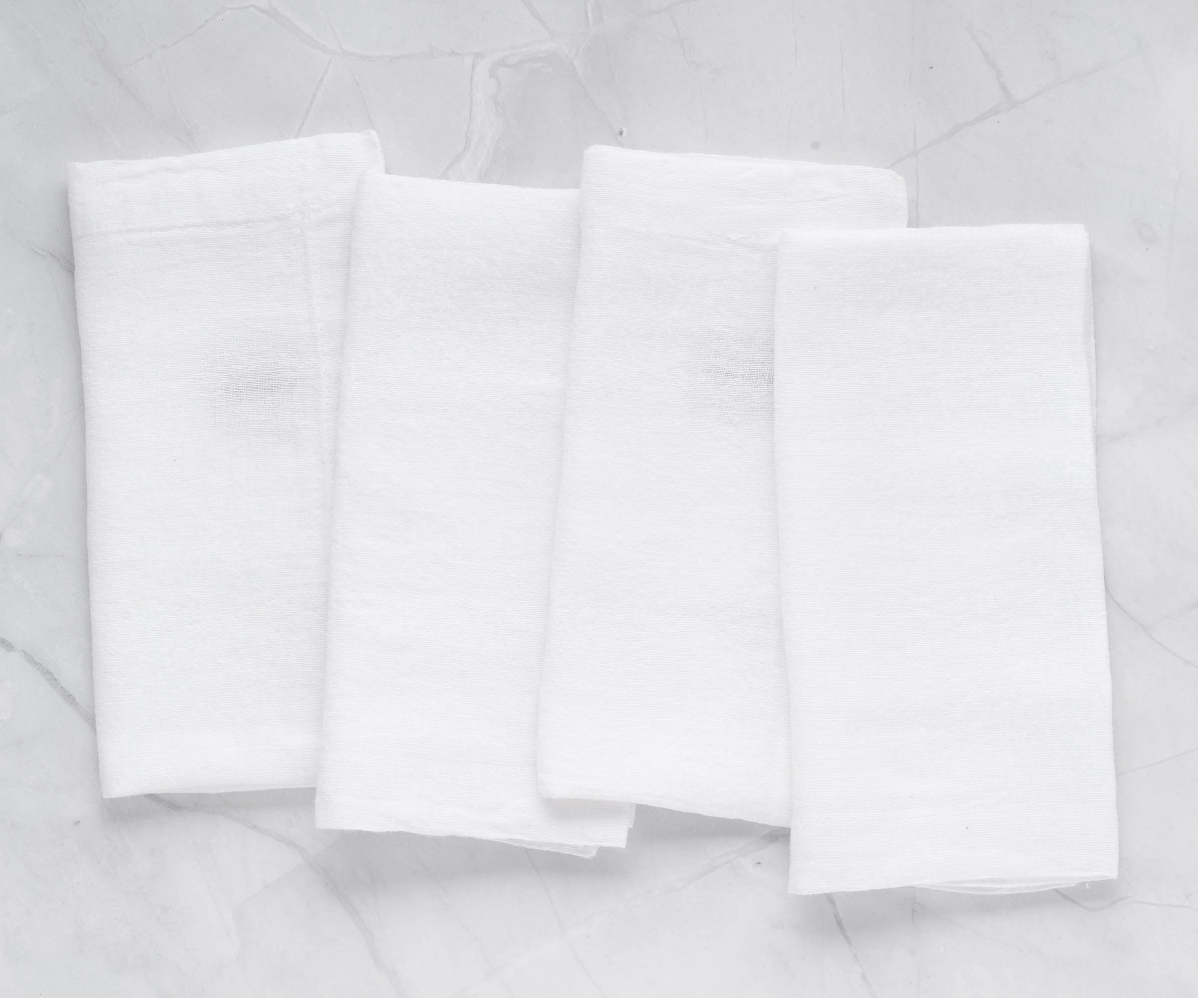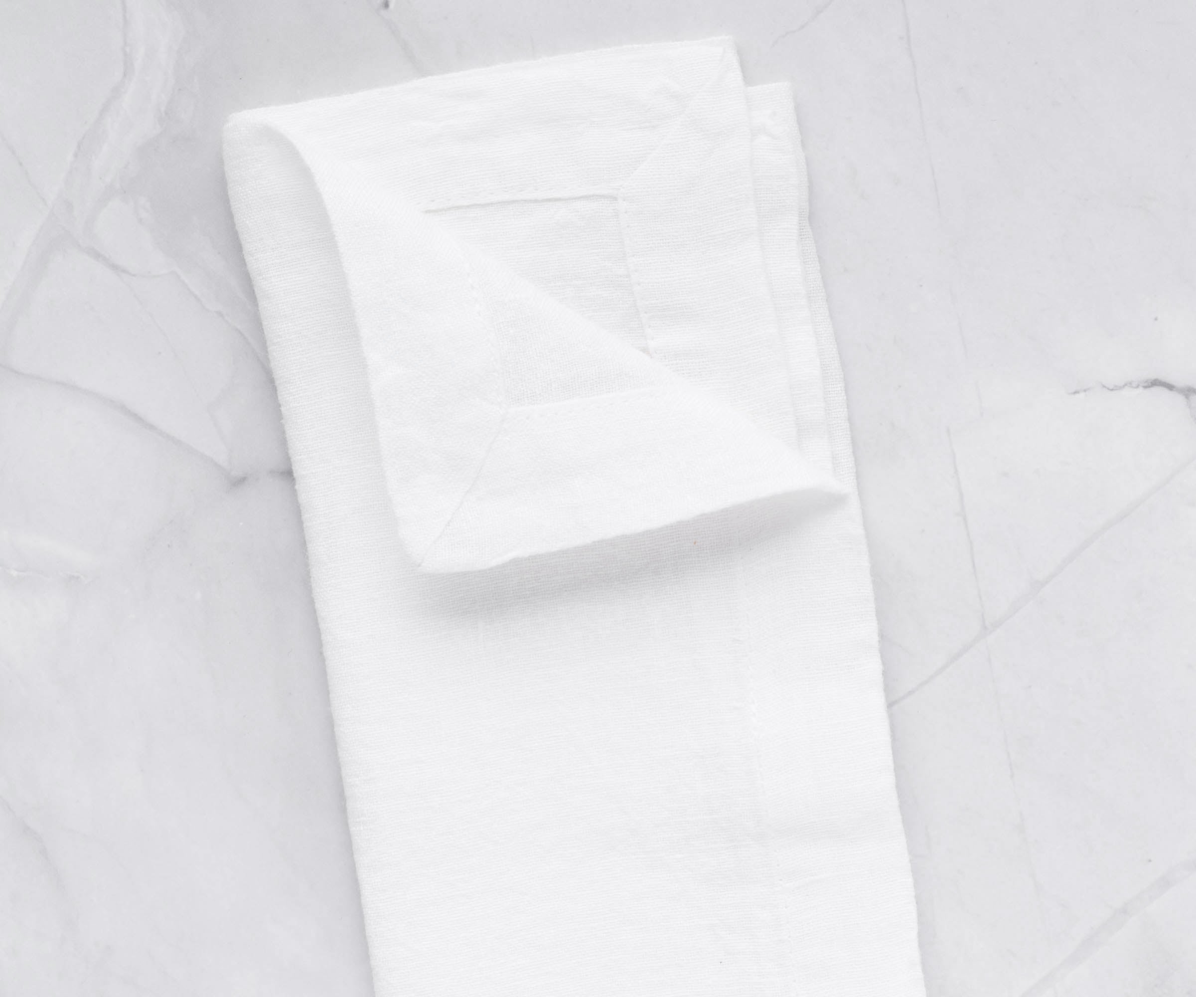 - White linen napkins are soft, absorbent cotton and machine washable.