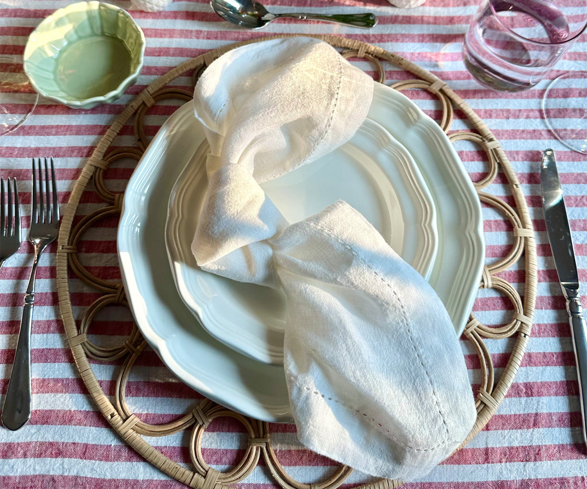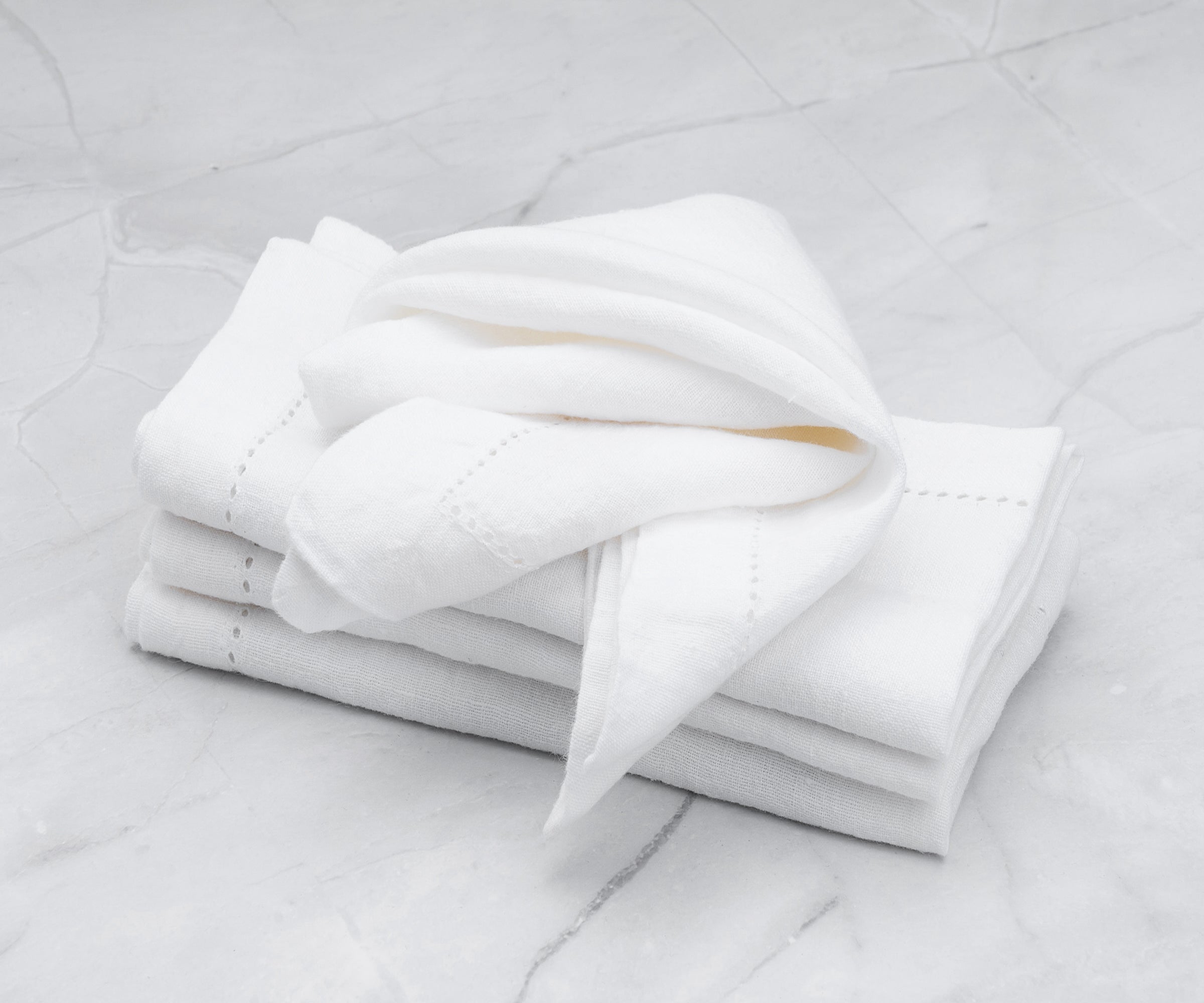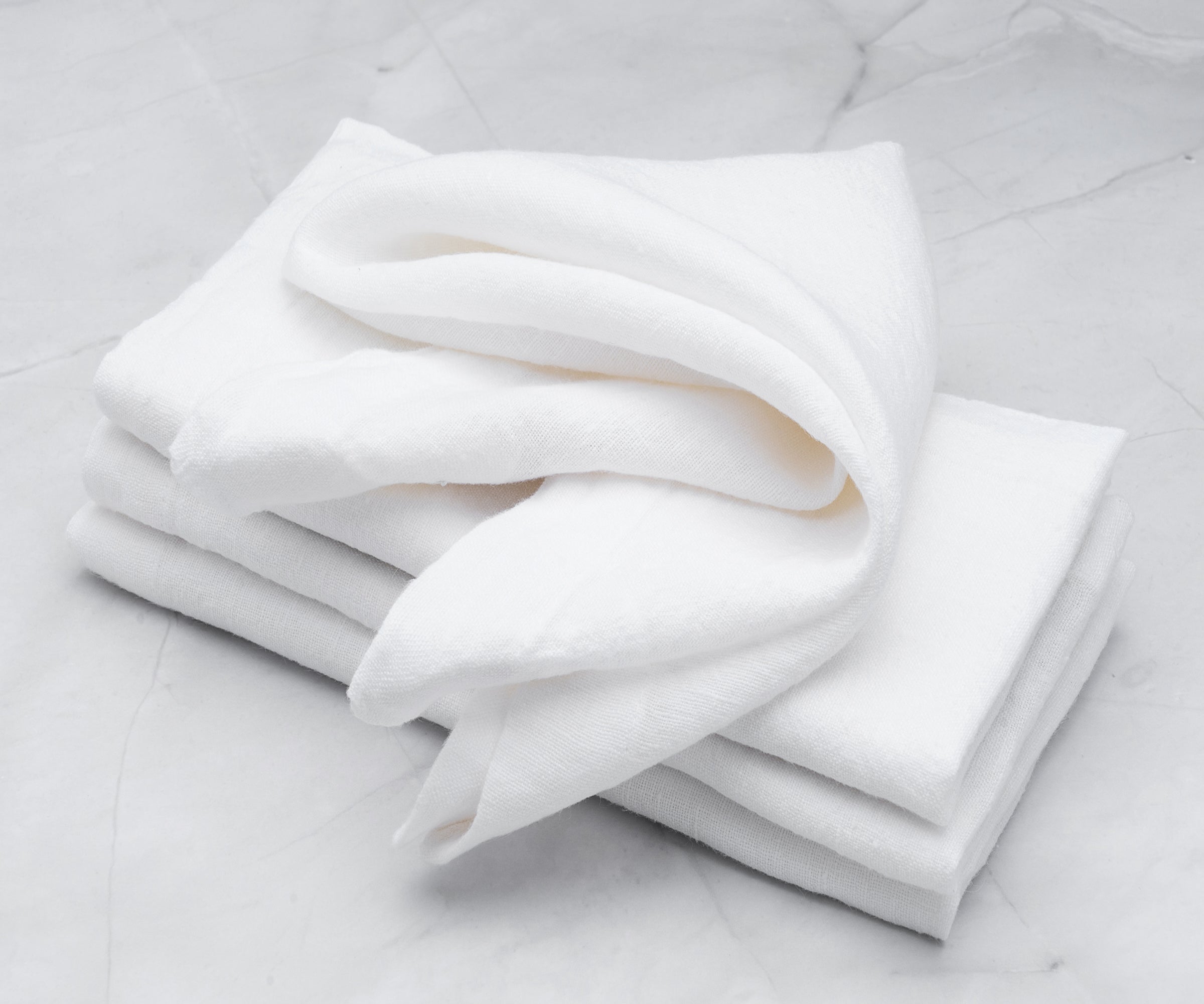 - White linen napkins are soft, absorbent cotton and machine washable.