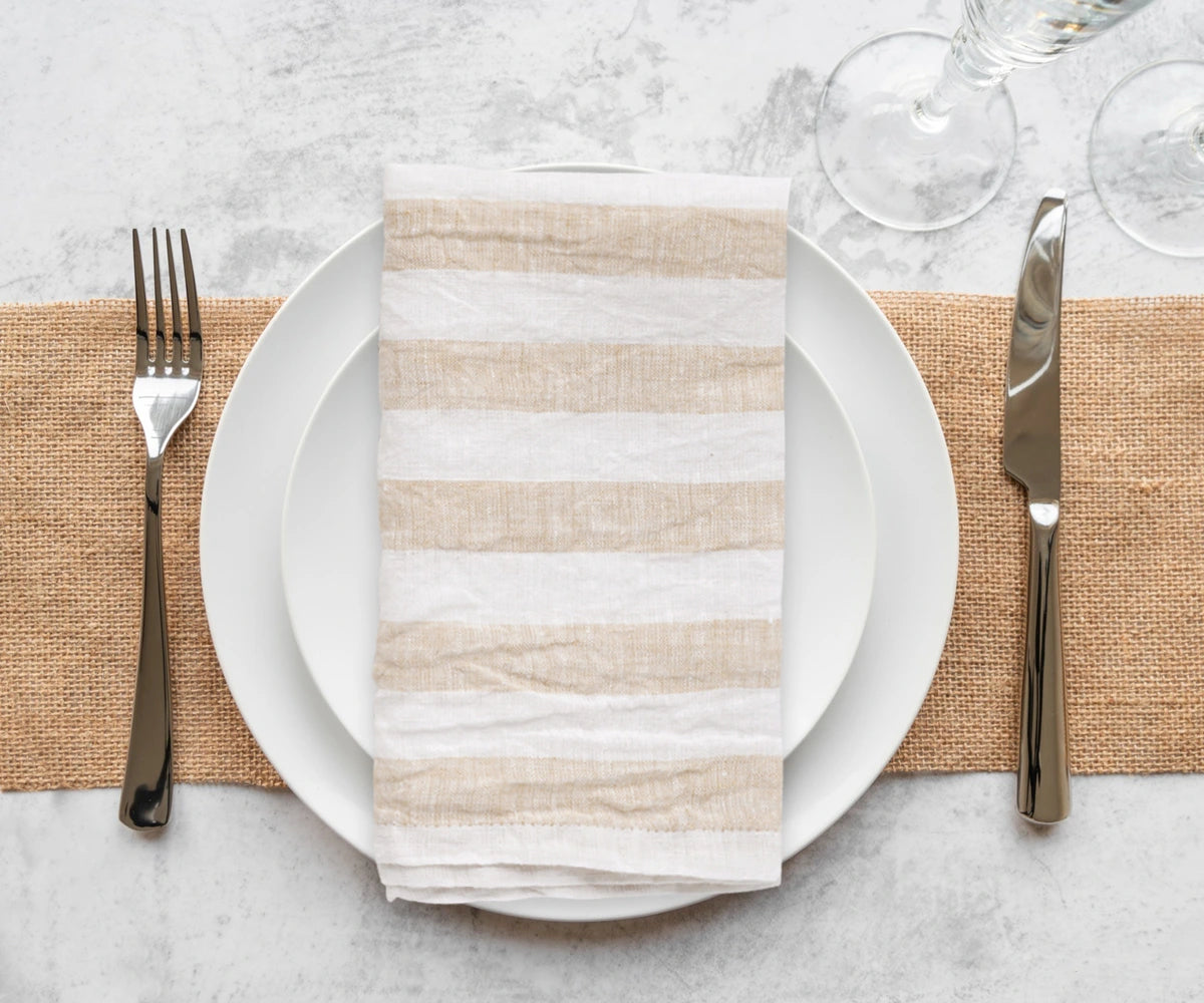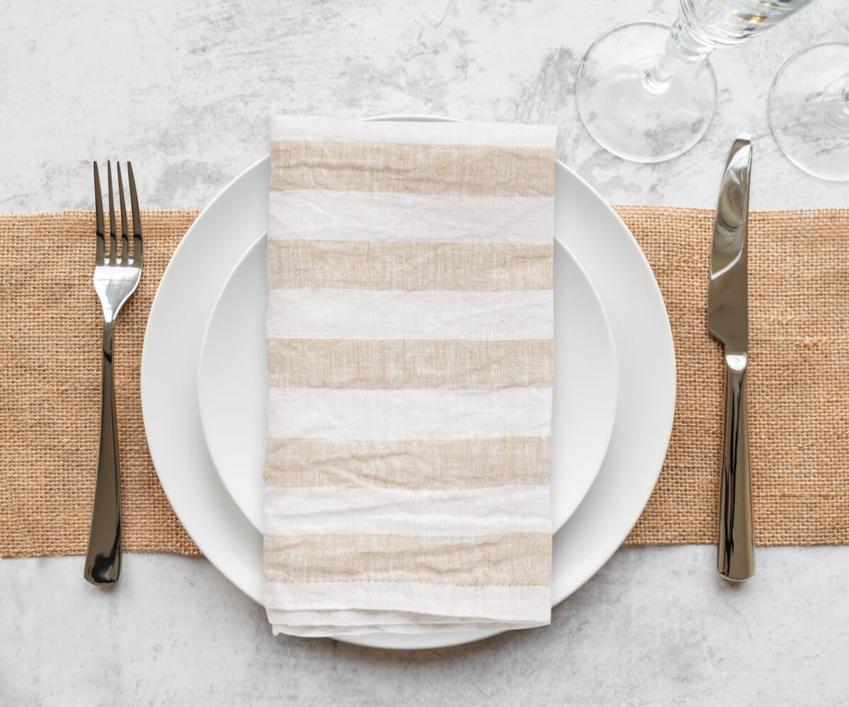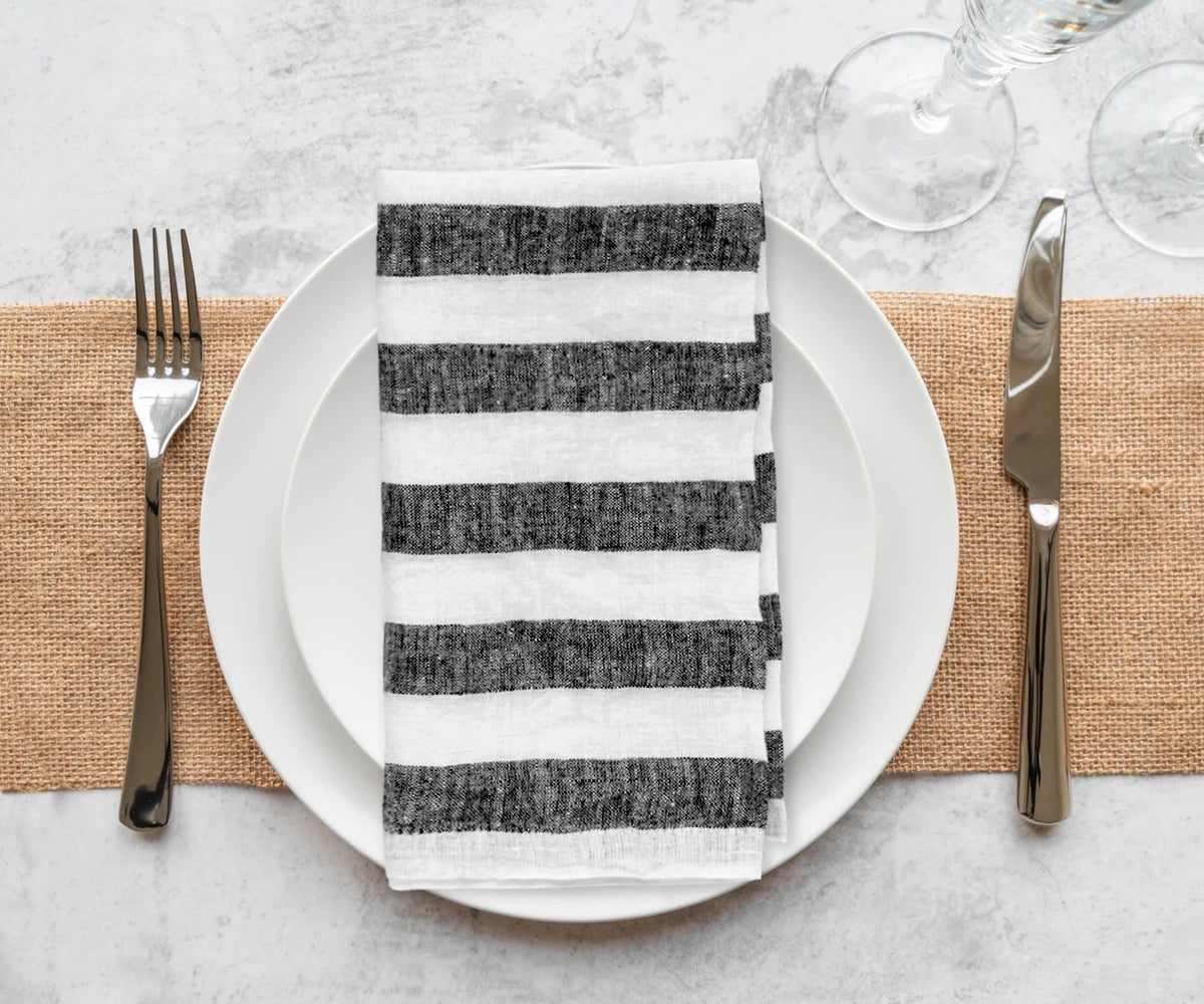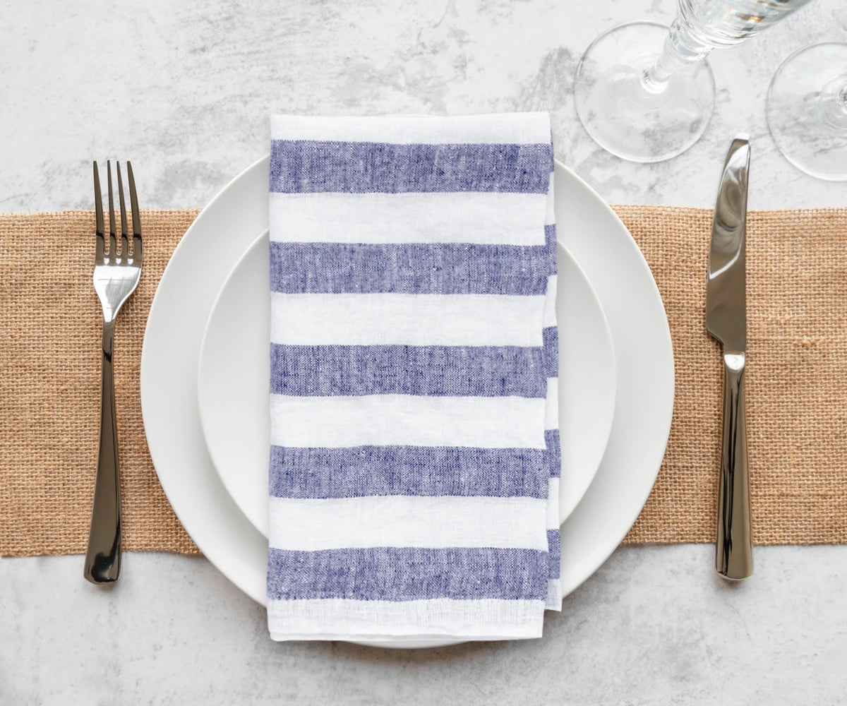 - Embrace the art of dining with our Linen Striped Napkins – the epitome of Linen napkins designed for those who appreciate the perfect blend of aesthetics and functionality.