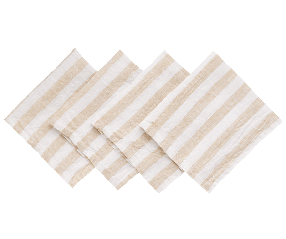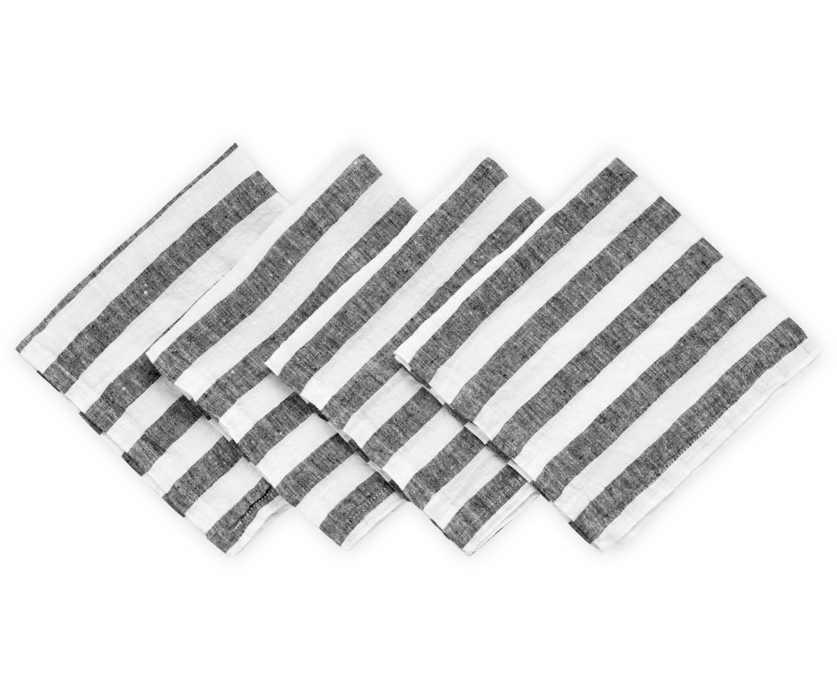 - A Set of 4 striped napkins adds a touch of luxury to your table, whether for a formal dinner or a casual gathering.