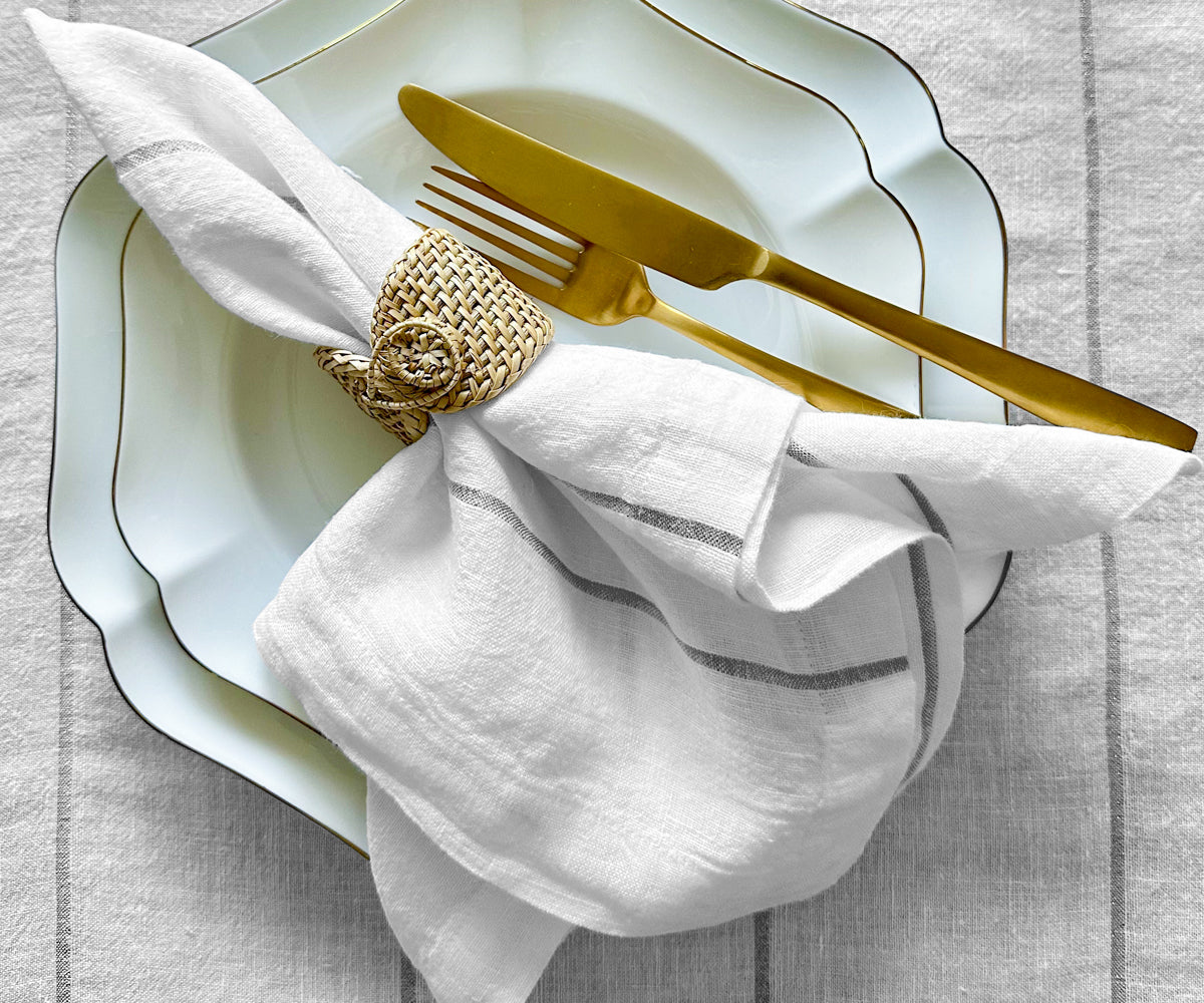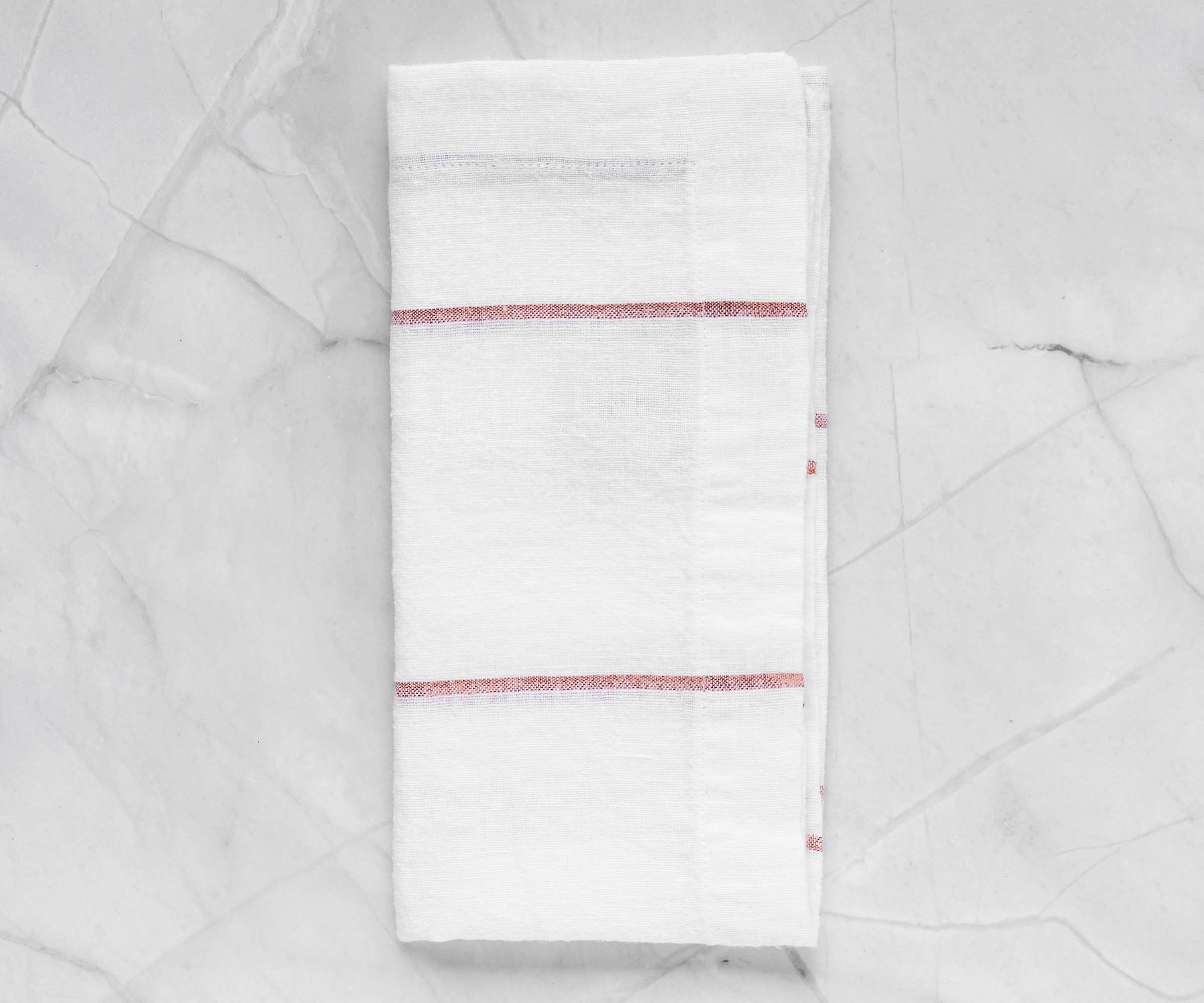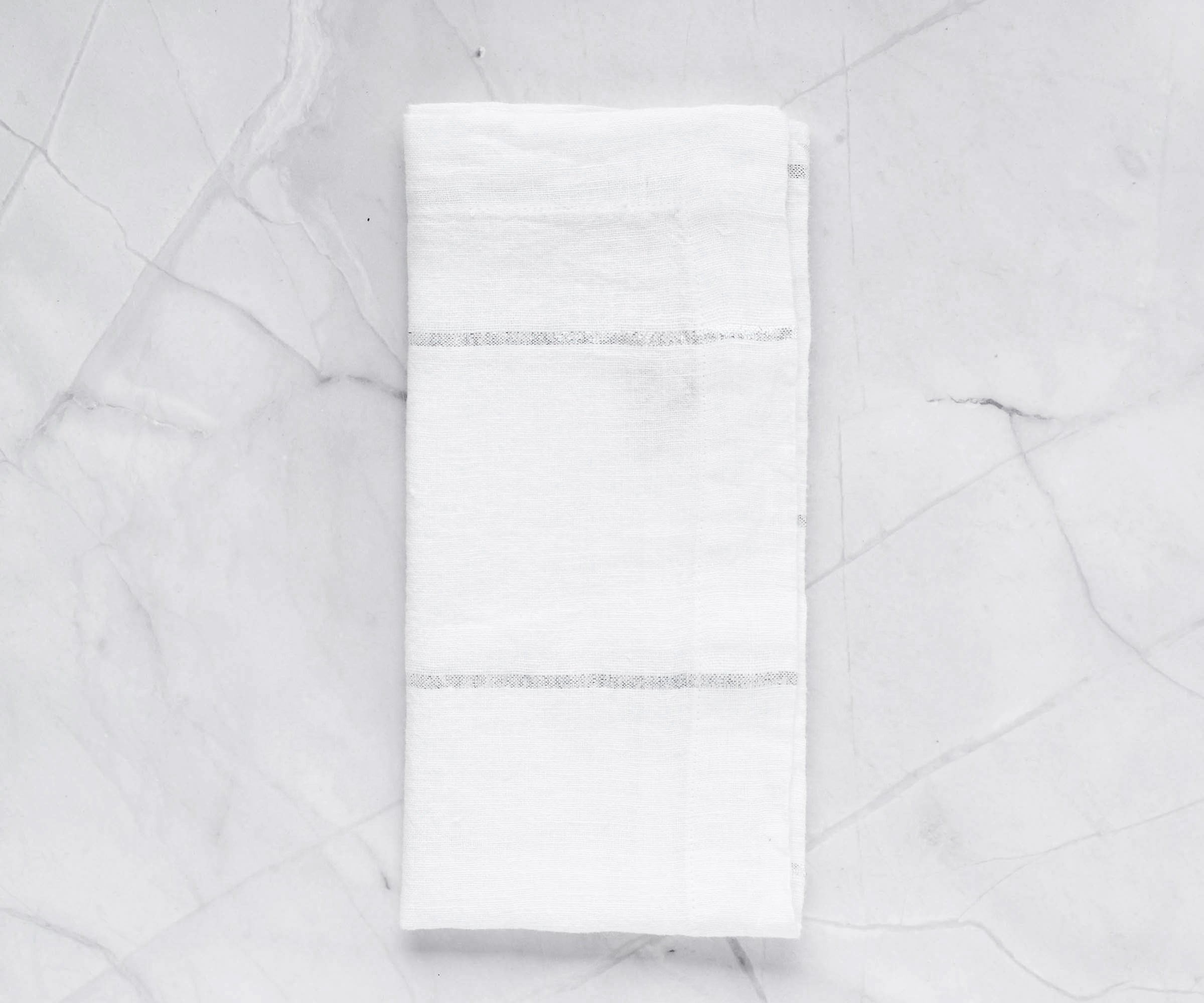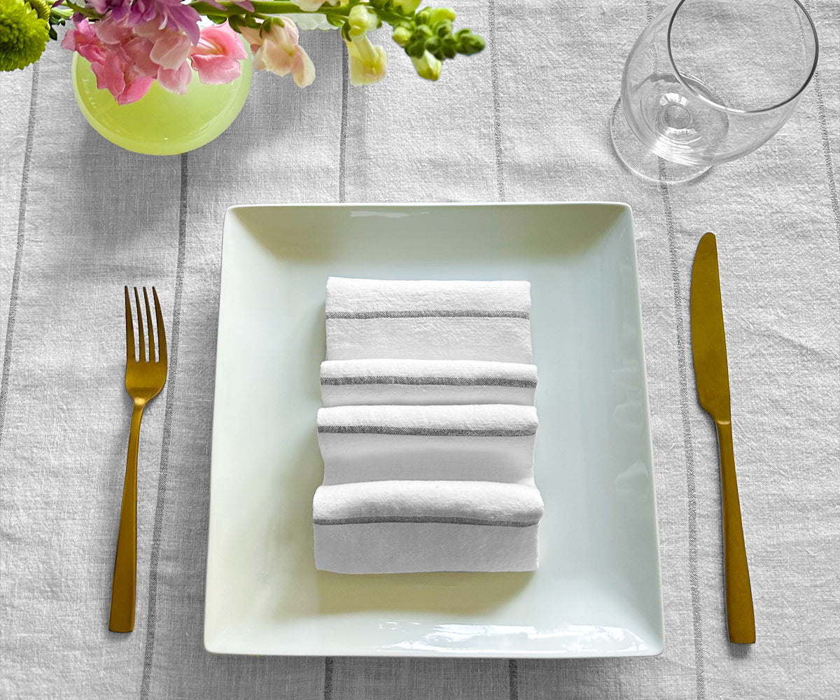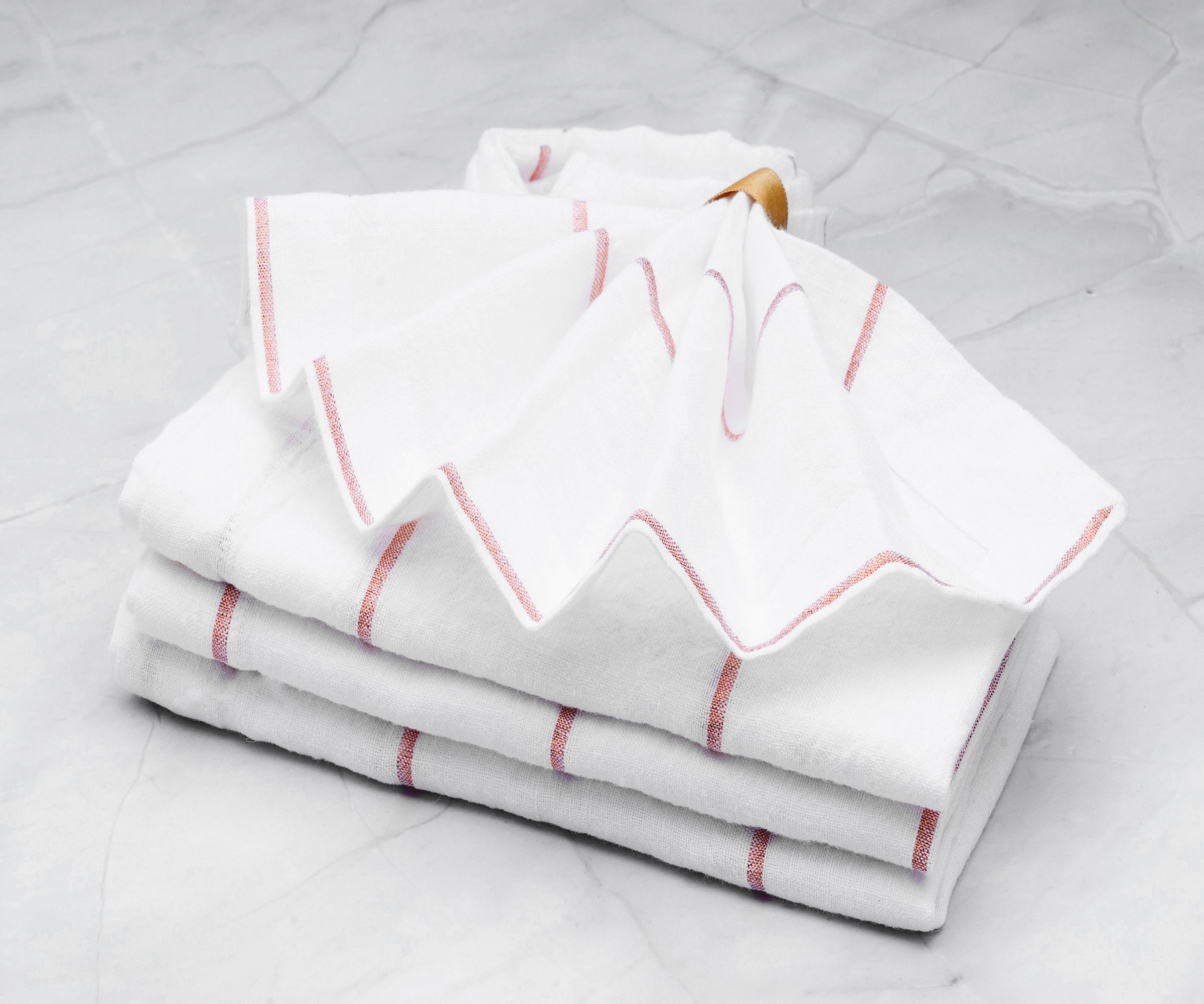 Pair the white linen napkins with an Discover the full Italian Stripe experience with our exclusive collection, featuring and coordinating Italian stripe