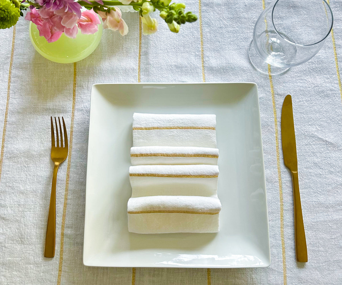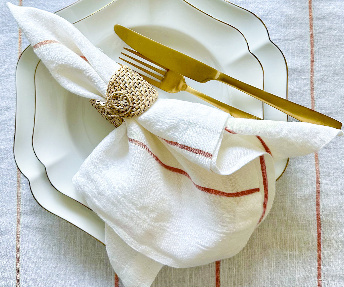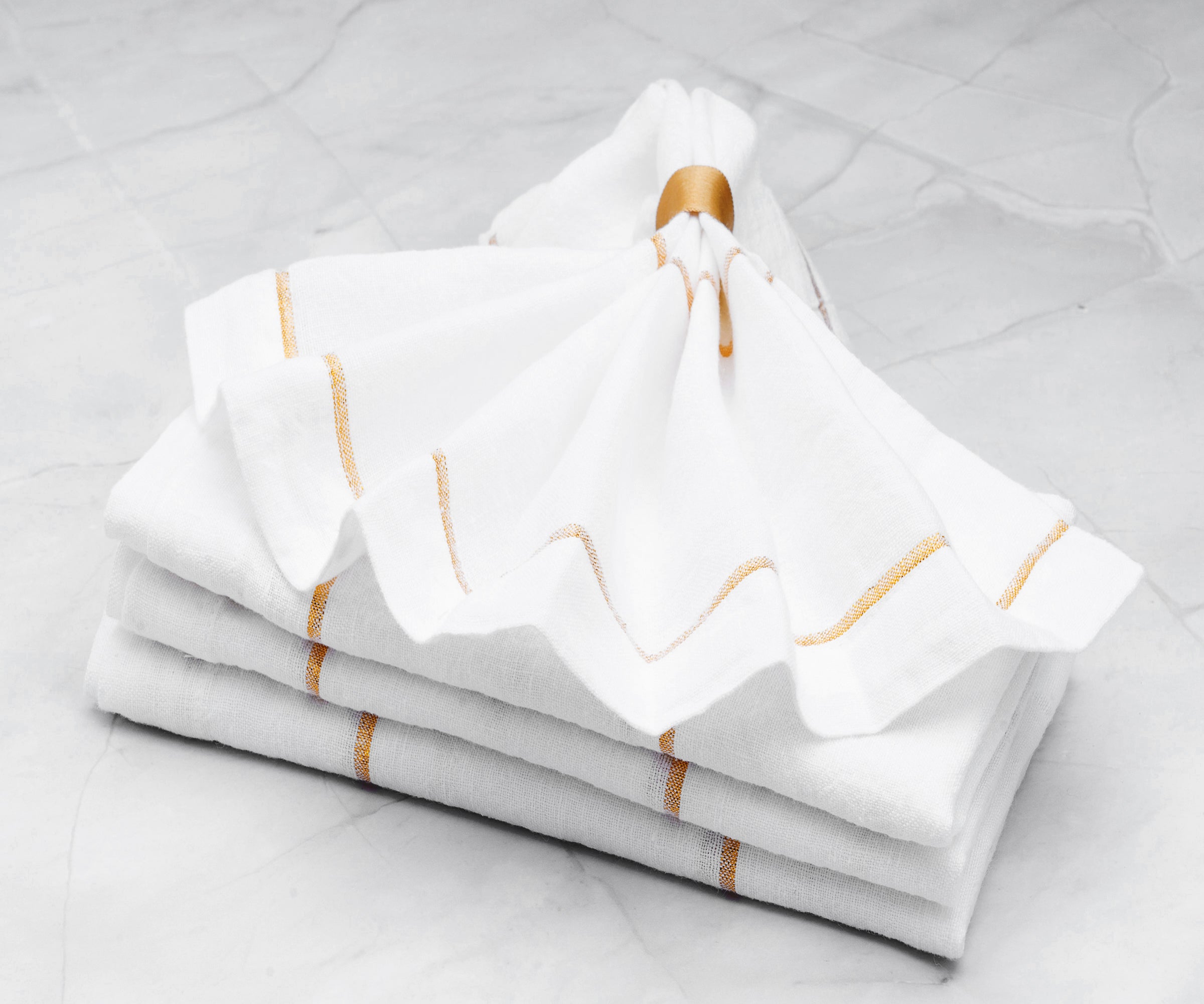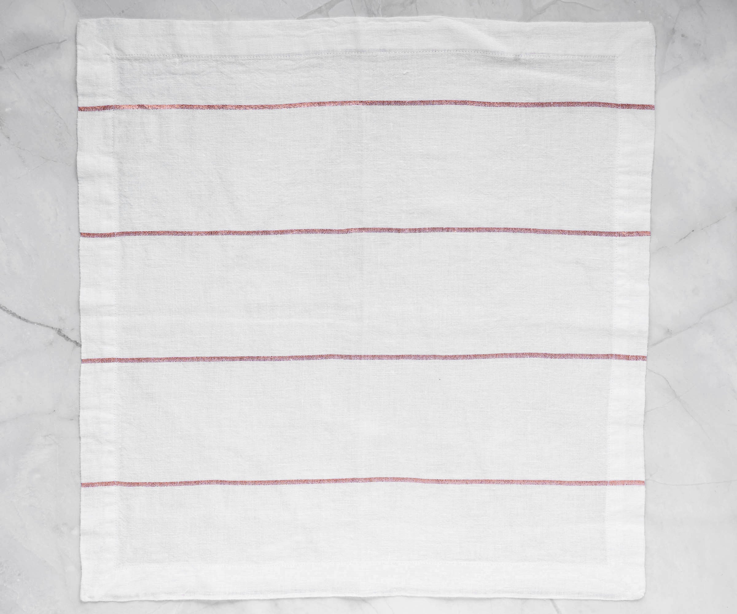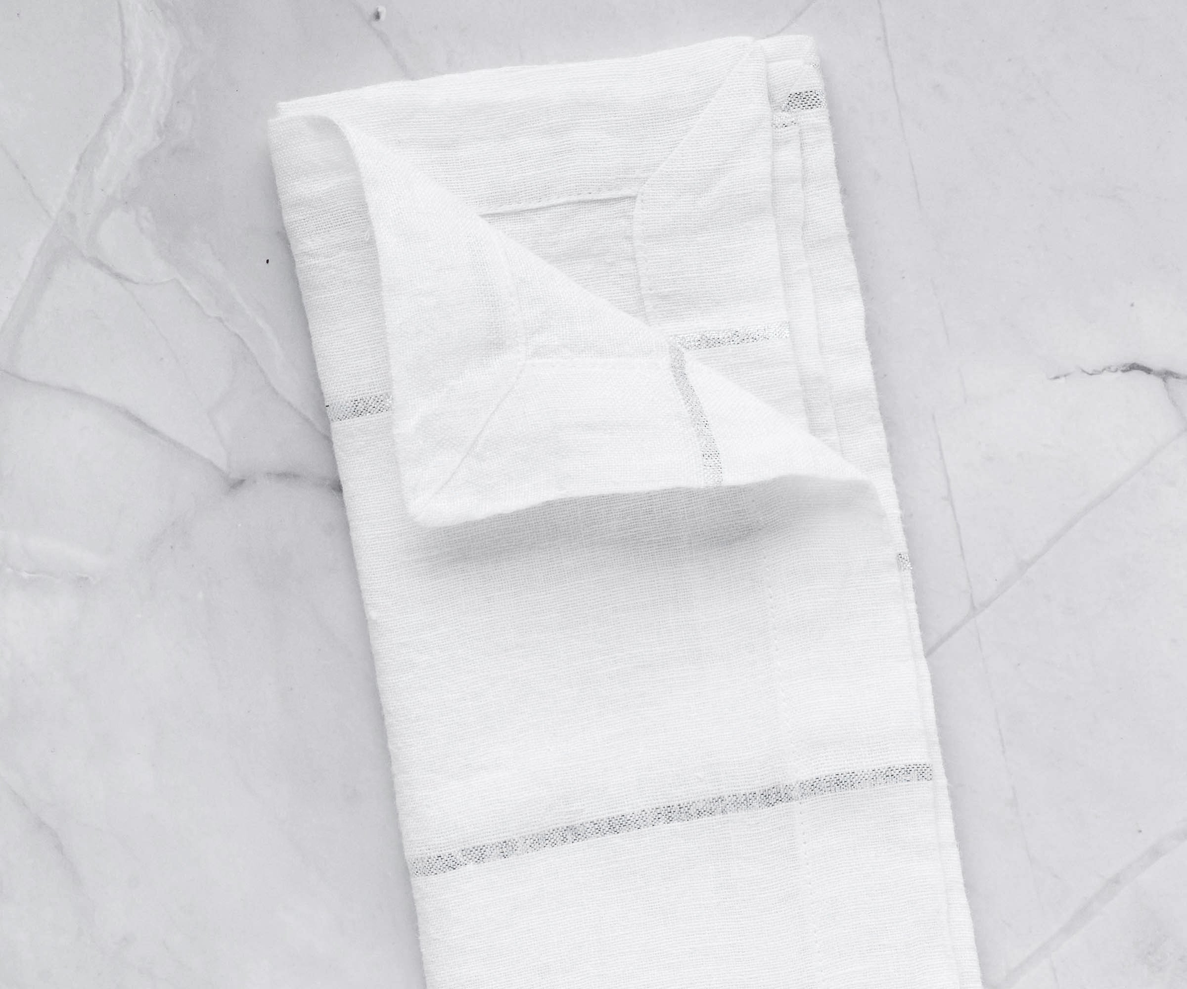 Pair the white linen napkins with an Discover the full Italian Stripe experience with our exclusive collection, featuring and coordinating Italian stripe