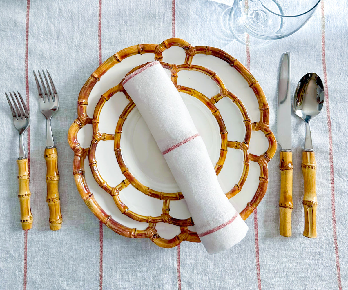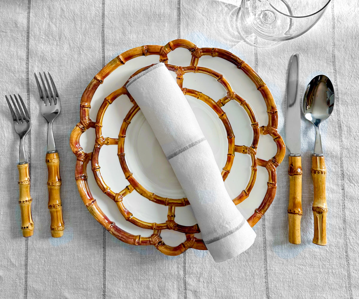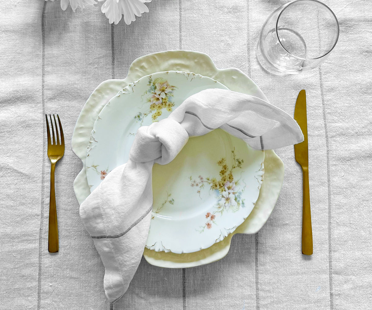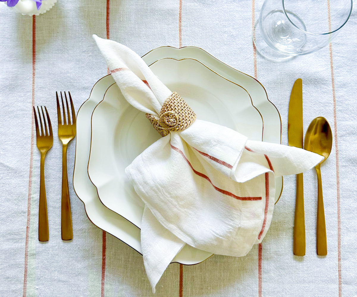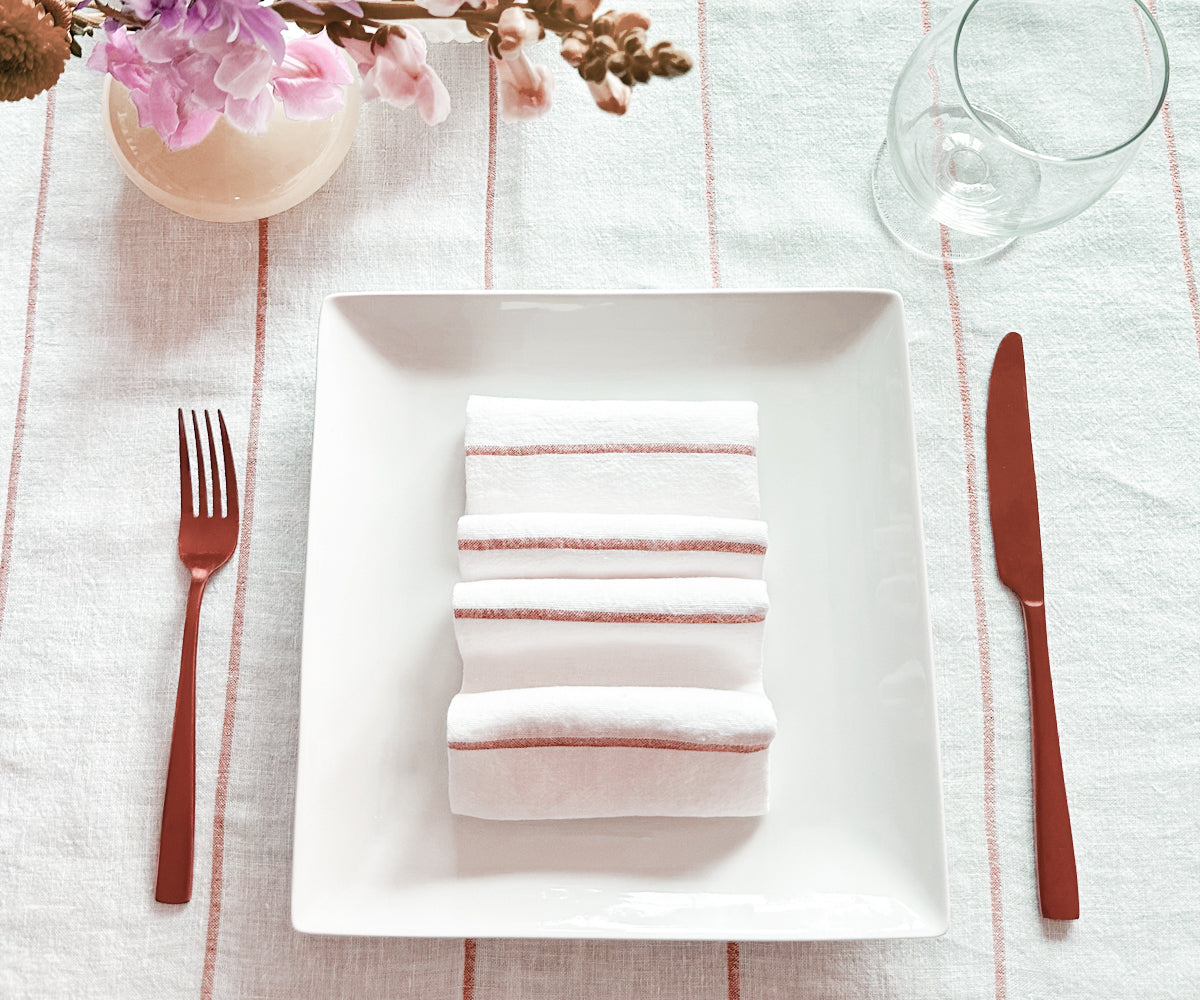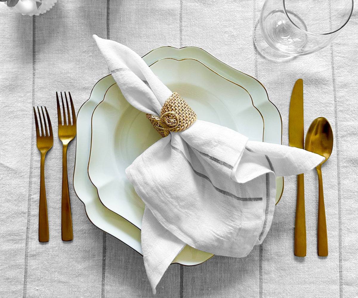 Pair the white linen napkins with an Discover the full Italian Stripe experience with our exclusive collection, featuring and coordinating Italian stripe