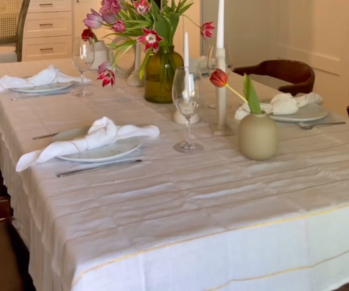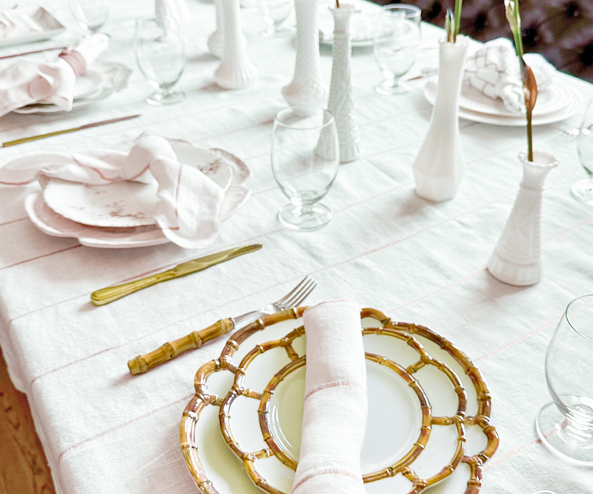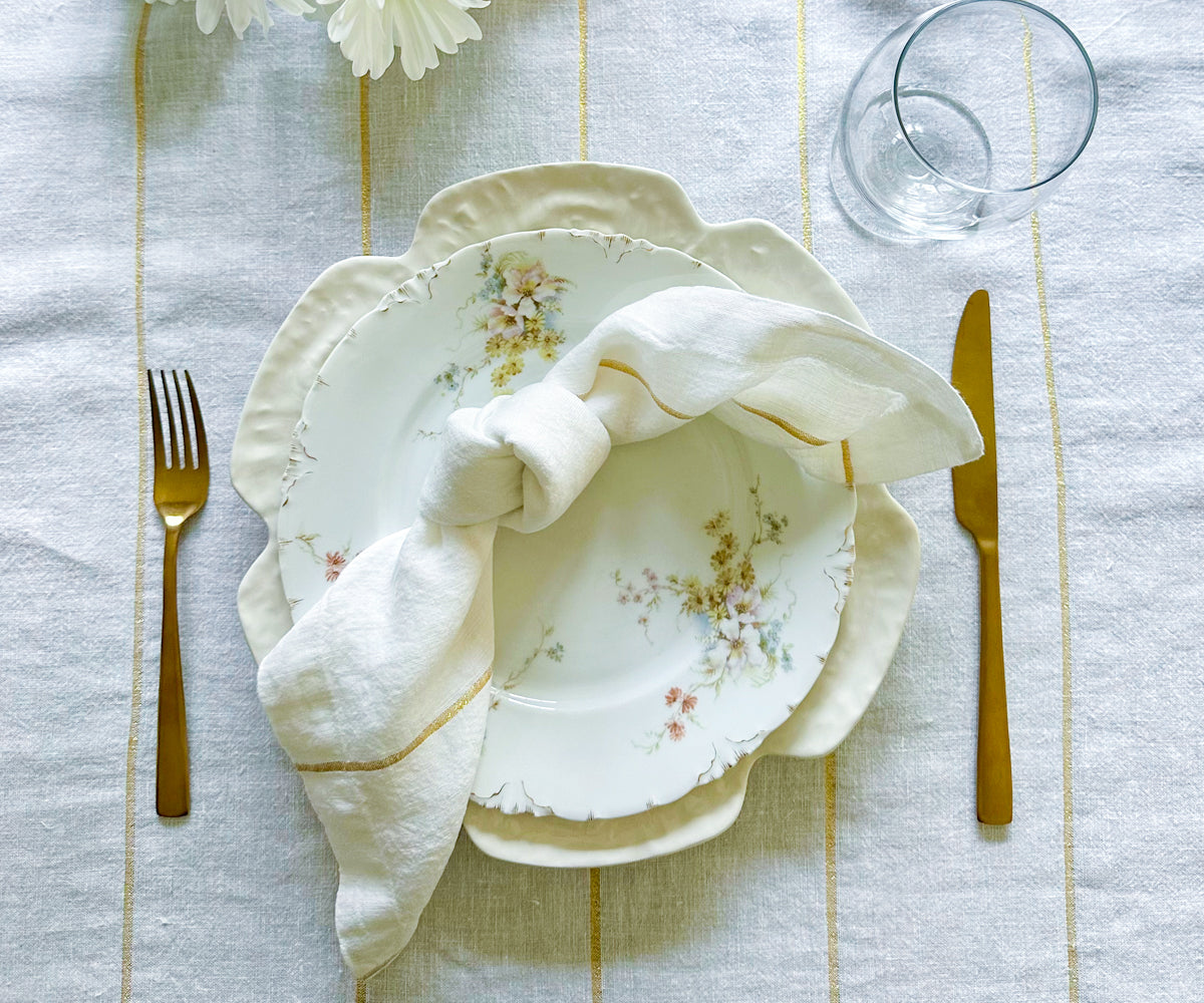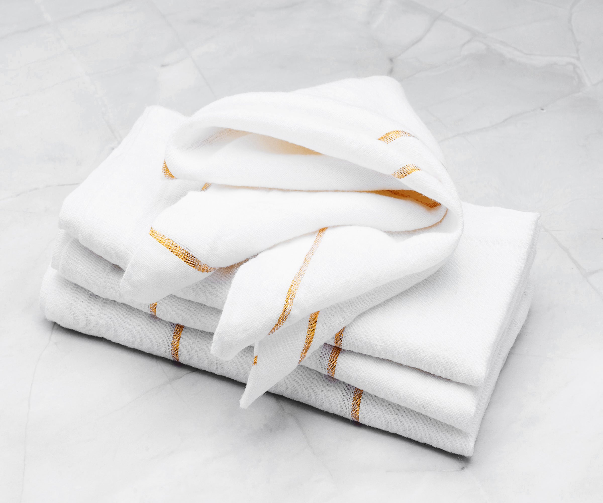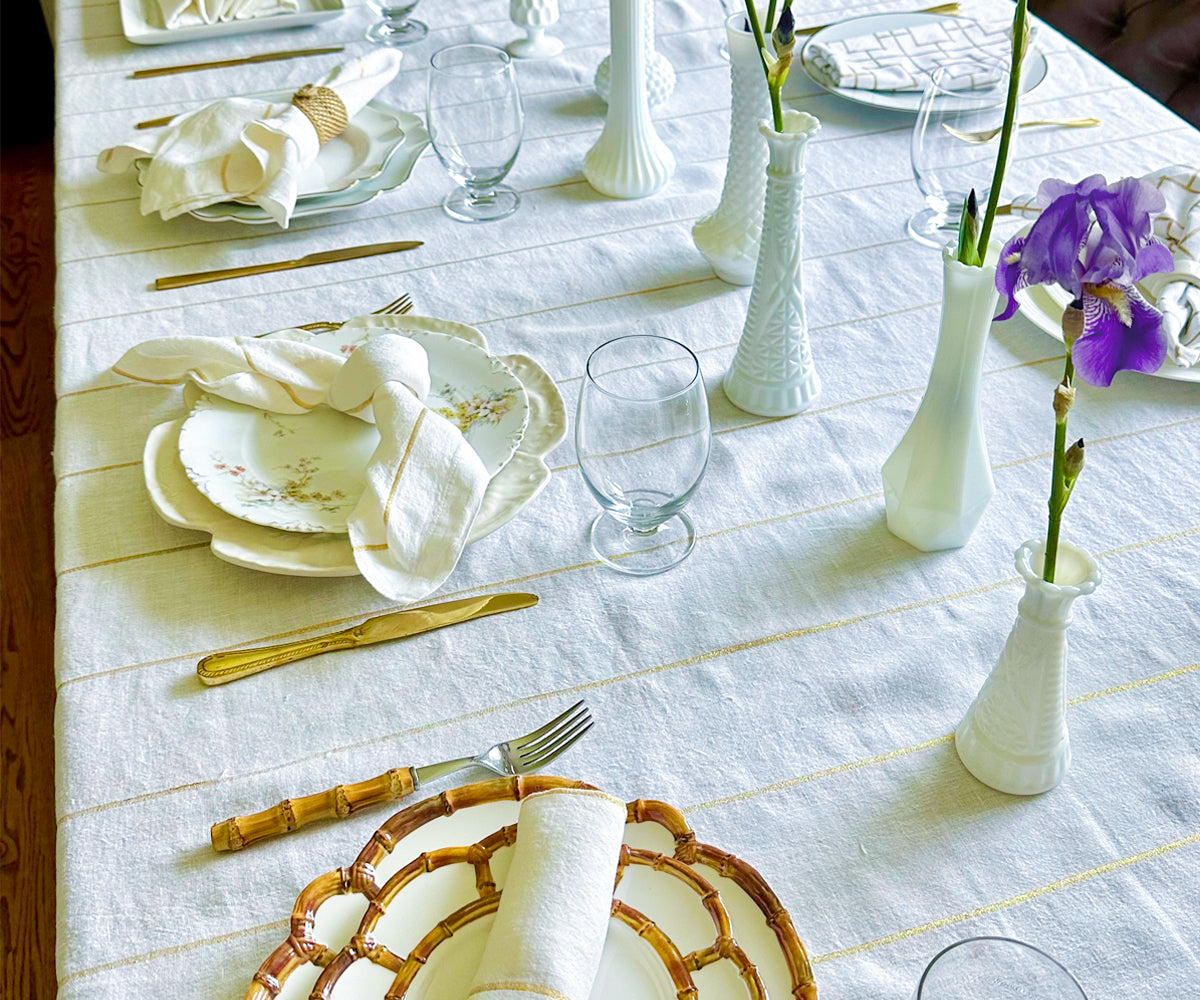 Pair the white linen napkins with an Discover the full Italian Stripe experience with our exclusive collection, featuring and coordinating Italian stripe