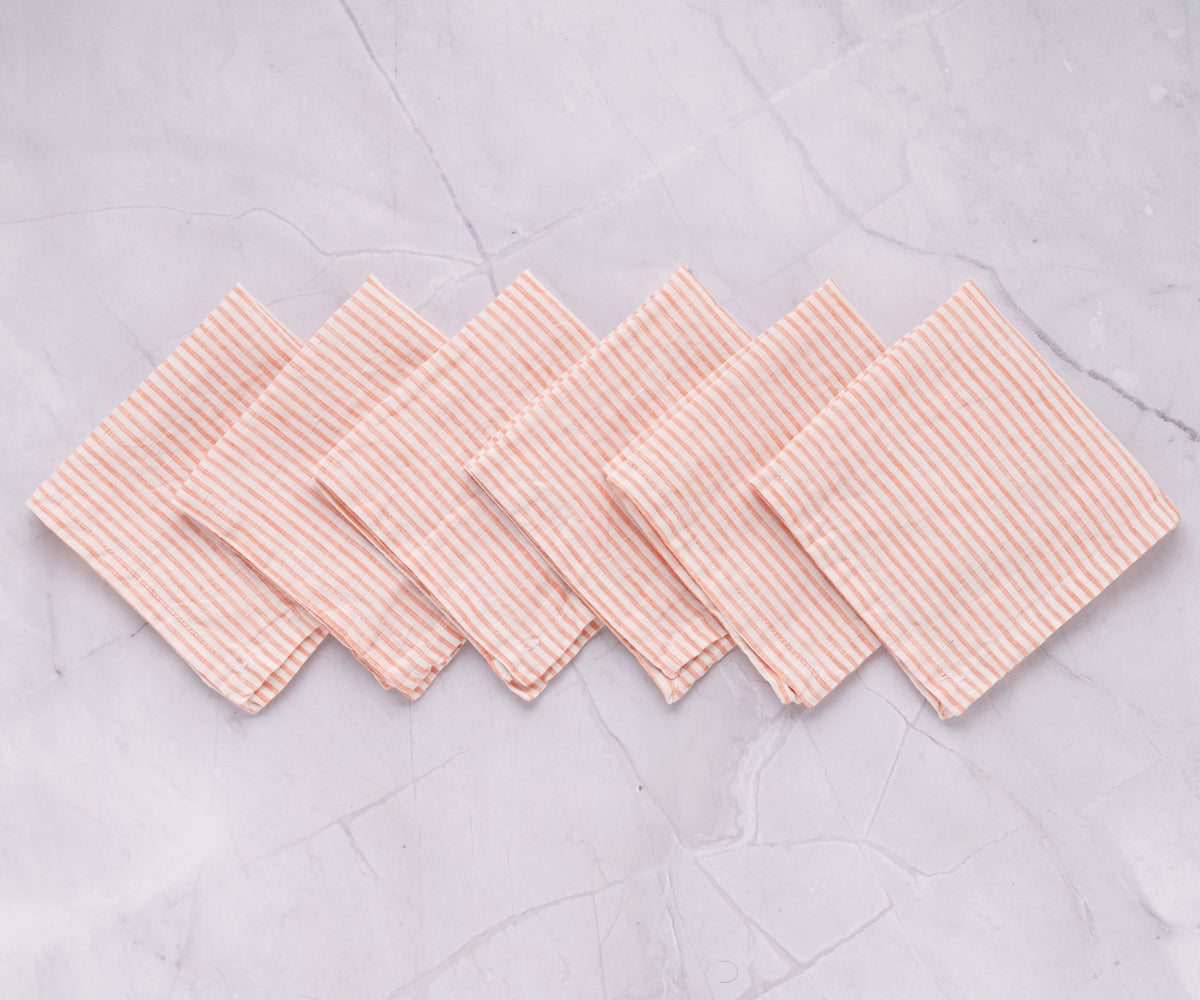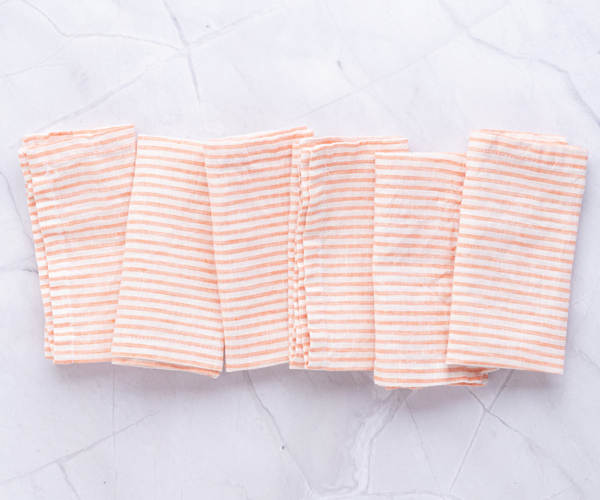 Orange Striped Napkins - Pure Linen Napkins: