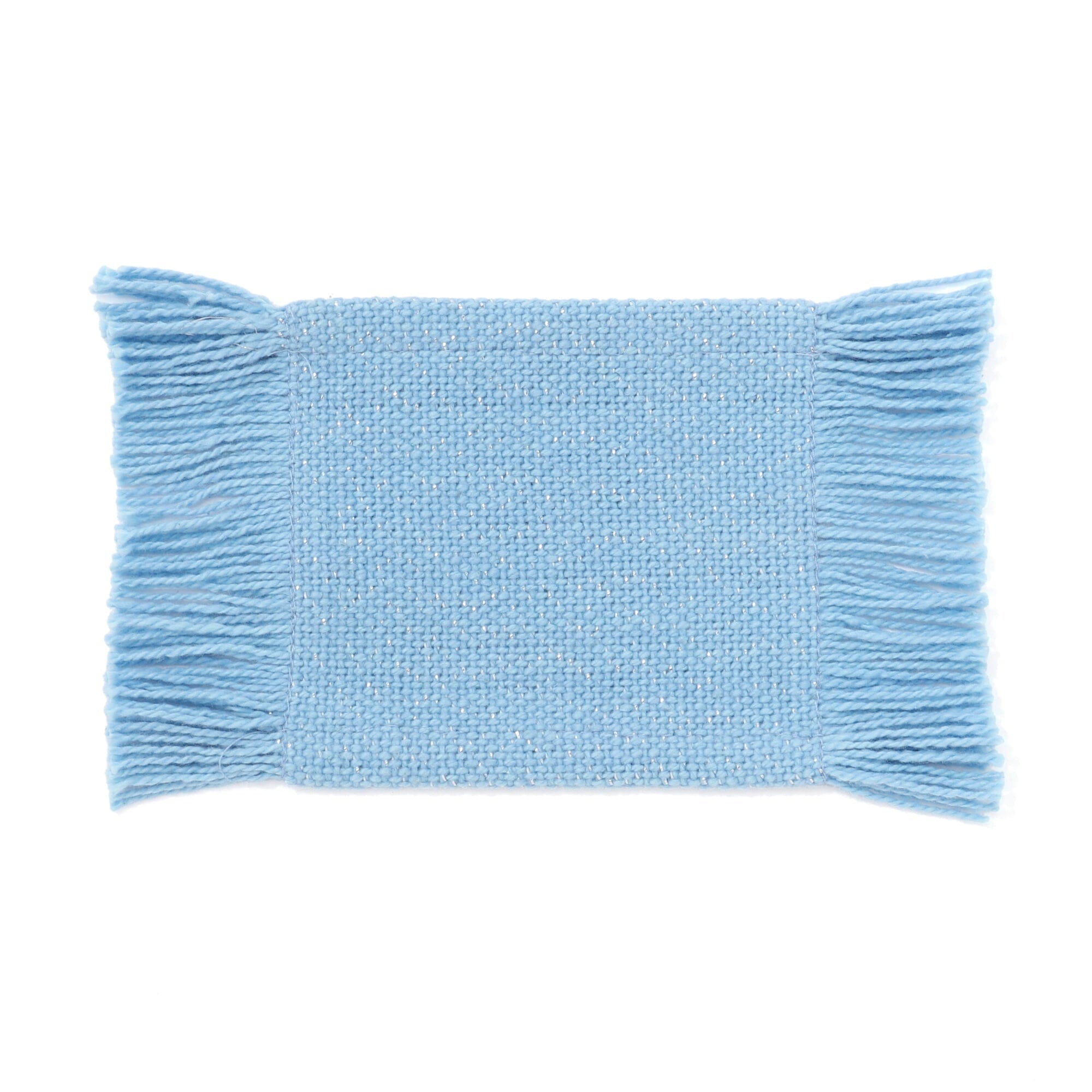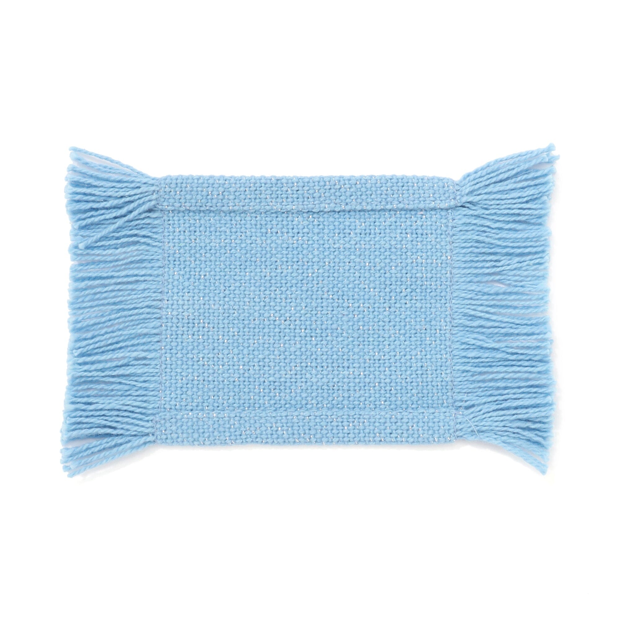 A simple coaster with plenty of fringe.Silver glitter thread is an accent.